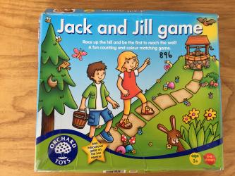 1 x zippit bag 1 x Jack and Jill game box 1 x instruction card 8 x jigged boards 4 x character pieces 4 x character stands 1 x spinner 1 x colour spot dice 1 x number dice